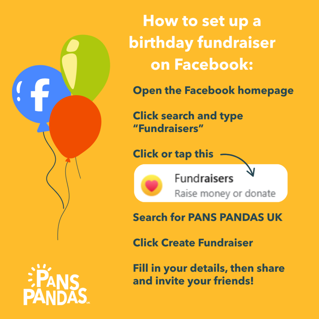 Our Fundraising Lead, Lynn, is happy to talk through your ideas and help you to support PANS PANDAS UK. Don’t forget to join our fundraising Facebook group for more inspiration!