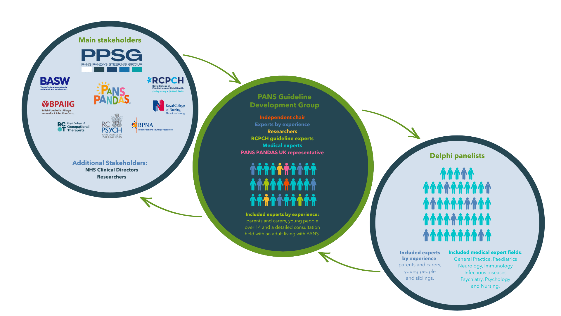 Most importantly, the guideline group wanted to ensure your lived experiences were considered throughout the process. To help this happen, there are patient and parent members of the group as well as a representative from PANS PANDAS UK. Initial consultation was also held with a young adult living with PANS.