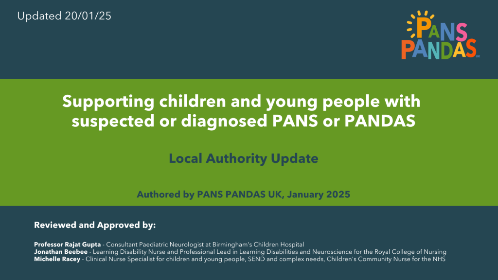 In January 2025, we were delighted to share with you that a Local Authority Update on the status of PANS and PANDAS has been distributed across all Local Authorities in England.