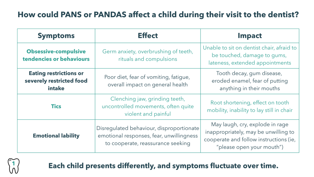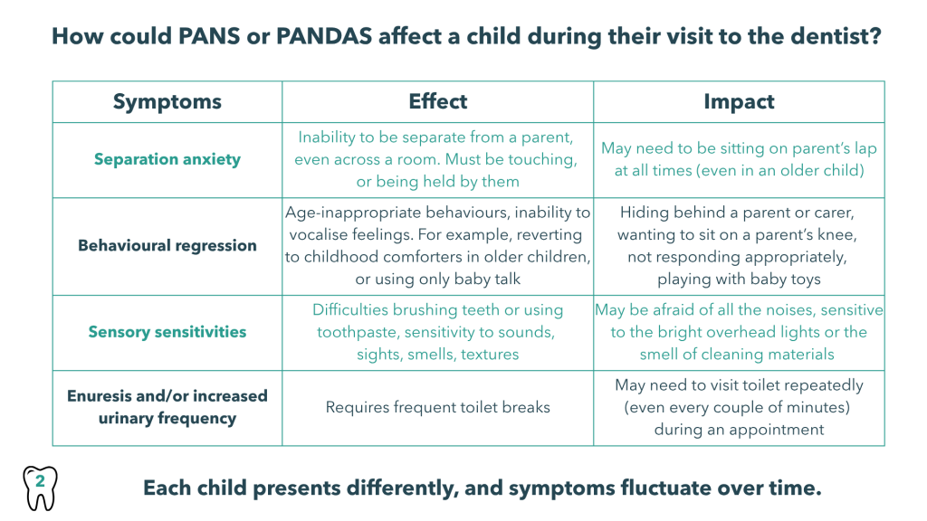 How could PANS or PANDAS affect a child during their visit to the dentist?